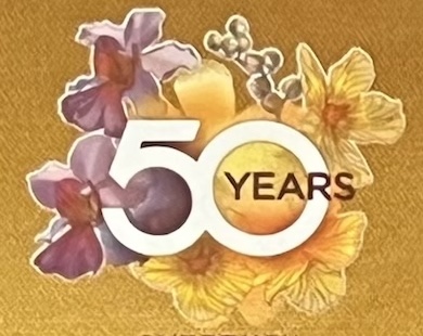 • CIA50 logo: Simpur & Vanda Miss Joaquim in full bloom (front)
