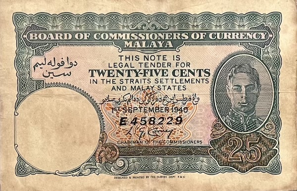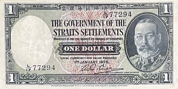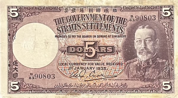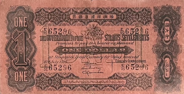 Colonial notes were used before Singapore’s independence—during the days we were still known as “British subjects” rather than “Singaporeans”. They include all banknotes issued during the British rule, such as the Straits dollar, the Malayan dollar, and the Malayan and Borneo dollar, all of which are highly coveted today. For completeness, I have also included in this category the wartime notes issued by the Japanese during their occupation of Singapore, even though they are not colonial notes.