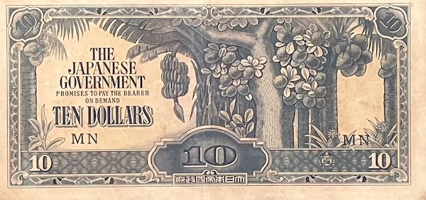 During the Japanese occupation of Singapore (1942–1945), the Japanese government issued its own currency to replace all previous money. These notes, nicknamed ‘banana money’ for the banana tree design on the $10 note, were mass-produced without proper security features or backing, leading to rampant counterfeiting and hyperinflation. As the war progressed and confidence in the notes collapsed, their value dropped sharply, and many Singaporeans resorted to barter trade. By the end of the occupation, these notes were practically worthless. (Today, banana notes are sold at a small fee in the collectors’ market, but those with serial numbers and in good condition can still be worth much more, because they were the rare ones printed when the Japanese were still actively accounting for them.)
