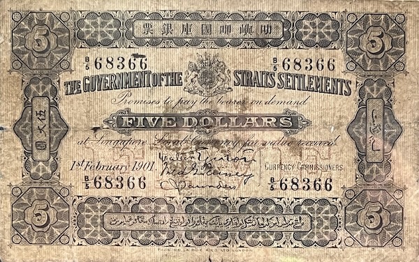 Before the introduction of official banknotes, trade in Singapore relied on a patchwork of foreign currencies. Merchants and traders used a variety of coins including Spanish silver dollars, Indian rupees, Dutch guilders, and Chinese cash coins—reflecting Singapore’s status as a free port and melting pot of cultures. This mix of currencies created confusion and inconsistency, prompting the British authorities to seek a more unified monetary system. The turning point came with the formation of the Straits Settlements Government, a British colonial administration established in 1826 to govern Singapore, Penang, and Malacca—later joined by Labuan. Initially managed by the British East India Company, the Settlements came under direct Crown rule in 1867. To establish order and cohesion, they began issuing official currency, and in 1898, the first Straits Settlements banknotes were introduced.