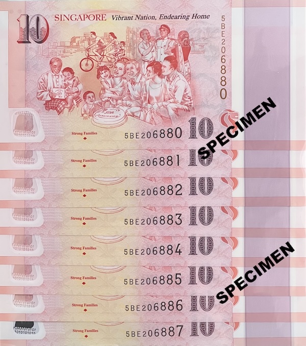 Running numbers are two or more banknotes with serial numbers that go up one after another. For example, a 2-piece running number set could be 450871 and 450872. A 50-piece running number set might go from 680100 to 680149, and a 100-piece set could go from 720000 to 720099. These notes are often collected together because they follow a clear sequence and are harder to find as a full set once separated.