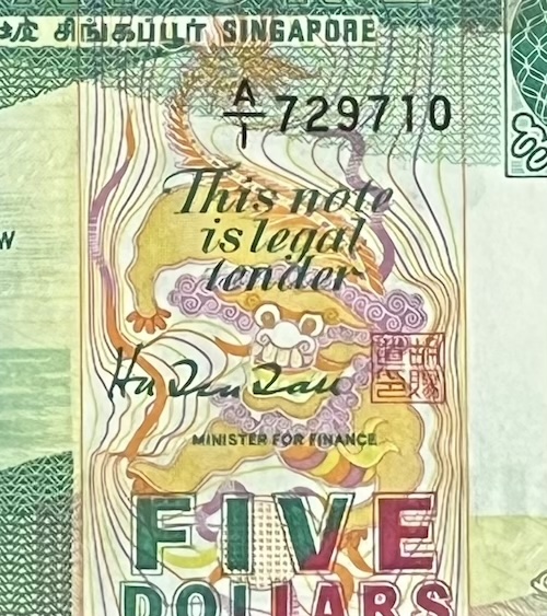 The government has not explained why these auspicious symbols from folklore were included the Ship Series but not the earlier banknotes. But here’s my guess. In the late 1970s and early 80s, a few years before the Ship series notes were issued, Singapore had experienced several serious incidents. For example, in 1978, the Spyros ship exploded at Jurong Shipyard, killing 76 people. In 1981, a fire broke out at the Pulau Bukom refinery after it was struck by lightning. In 1983, the Sentosa cable car accident caused seven deaths. These were deeply felt tragedies. With a large bulk of Singaporeans still superstitious at that time, perhaps the government felt that the use of symbols like the dragon or phoenix—narrated in Chinese folklore as harbingers of protection and good luck—could give people a sense of assurance and comfort.