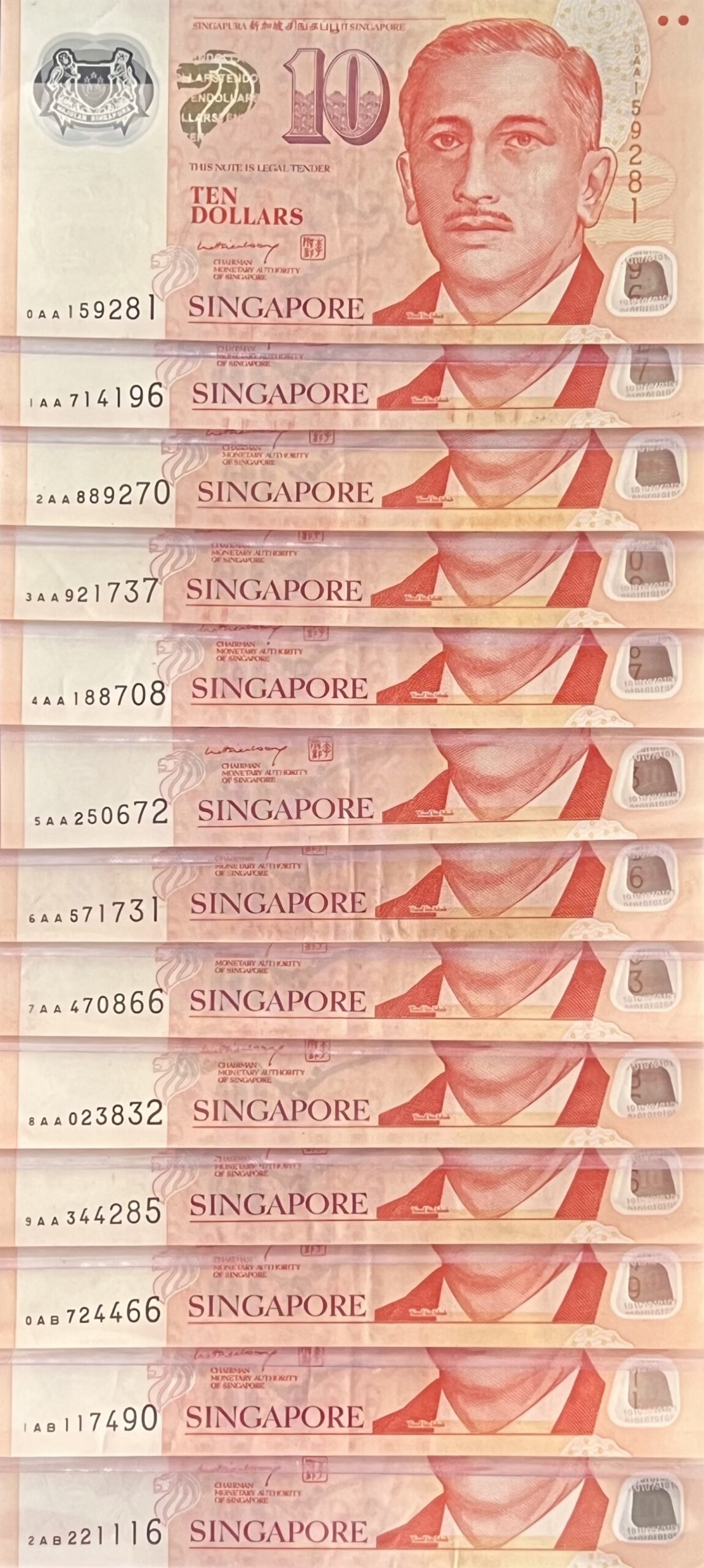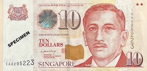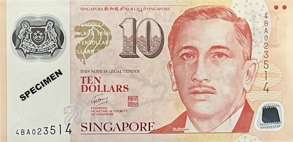 Singapore’s banknotes are made from two types of material: paper and polymer. All notes in the Orchid, Bird and Ship seres were printed on paper. The Portrait notes were also printed on paper when first issued, but this changed in 2004, when the $10 Portrait note became the first to be issued in polymer. The $5 followed in 2005, and the $2 in 2007. Today, only the $2, $5, and $10 Portrait notes are printed in polymer. The higher denominations—$50, $100, and the now-discontinued $1000 and $10000—remain in paper. Among commemorative notes, only the 1996 MAS25 and 1999 M2 were printed in paper. The rest, including the 1990 SG25 note—which is in fact Singapore’s first-ever polymer note, long before the Portrait series—were issued in polymer.