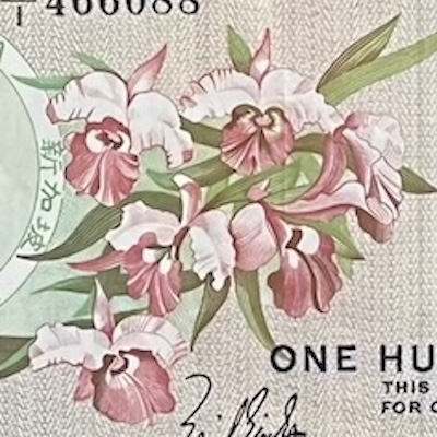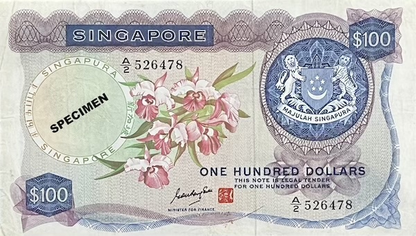 The $100 note has a long history in Singapore. It was already used during the colonial days, showing up in the Straits dollar, Malayan dollar, and later the Malayan and British Borneo dollar. Its inclusion in the Orchid Series marked its place among the first batch of notes issued by independent Singapore. Back then, it was a mid-range note, smaller than the bigger ones like the $500, $1000, and $10000. But over time, things changed. The $500 note was stopped after the Ship Series, and the $1000 and $10000 notes were removed during the Portrait Series. Because of this, the $100 note is now the highest-value note still being issued in Singapore today.