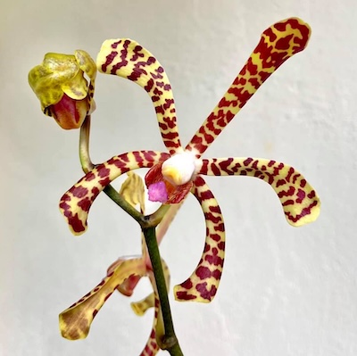 The Aranda Majula is the only orchid hybrid in the Orchid series that was created by the Singapore Botanic Gardens. All the other hybrids—although many people think otherwise—were actually created elsewhere. The name Aranda is a mix of two orchid types: Arachnis and Vanda. The word Arachnis comes from ‘arachnid’, which means spider, because the orchid’s petals look like spider legs. The word Majula is a reference to ‘Majulah Singapura’, the title of our national anthem. Another well-known Aranda hybrid is the Aranda Lee Kuan Yew, which is a cross between Arachnis hookeriana and Vanda Golden Moon. This orchid was named in honour of our founding Prime Minister after his passing in 2015.