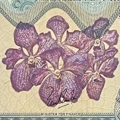 Vanda orchids are well known for their bright colours, large flowers, and long-lasting blooms, which make them very popular in the flower trade. In the 1960s, orchid nurseries in Singapore played an important role in building the country’s global reputation for orchid growing, and they often used Vanda hybrids to meet the demand from overseas buyers. Today, the Vanda Rothschildiana is the only true Vanda orchid featured on Singapore’s Orchid banknotes. This is because, after a scientific update in orchid classification, other orchids that were once part of the Vanda group have been moved to the Papilionanda category.