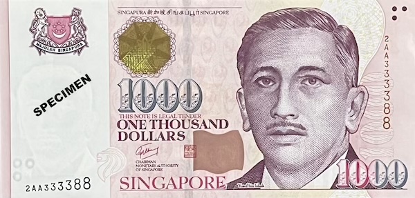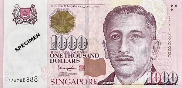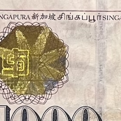 The Portrait $1000 was the last $1000 note ever issued in Singapore, and it was discontinued in 2021 to help prevent money laundering. Among all of Singapore’s banknotes, it is the only one to have the full lyrics of Majulah Singapura, our national anthem, printed on it. Meant as a security feature called micro-lettering, you can only see the words under high magnification. Among the Portrait series, it is the only note that features the Vanda Miss Joaquim, our national flower. Other Portrait notes have orchid designs in the background too, but this is the only one that features our national flower. Another unique thing about this $1000 note is its prefixes. They skipped from ‘0AA’ to ‘2AA’, omitting the 1AA series entirely, which has never happened before in Singapore’s banknote history.