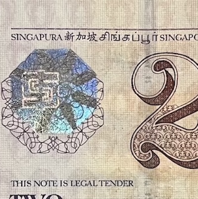 • Security thread shaped as Singapore island