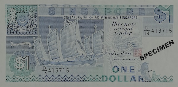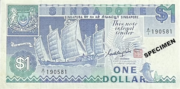 The Ship $1 note, issued in early 1987, was discontinued in 1989, making it the shortest-lived banknote in Singapore’s history. The government stopped using the note to encourage people to use the $1 coin instead. The Ship $1 was also one of only three notes in the Ship series—alongside the $100 and $1000 notes—to be signed by both Chairman BCCS Goh Keng Swee and Minister for Finance Hu Tsu Tau. The other denominations were only signed by Hu Tsu Tau.